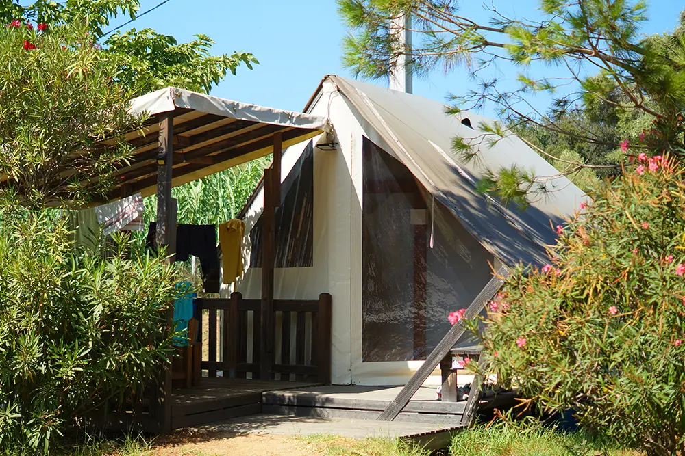 - Tentes aménagées : parfaites pour ceux qui souhaitent une expérience plus proche de la nature, nos tentes aménagées sont entièrement équipées pour un séjour sans compromis sur le confort.